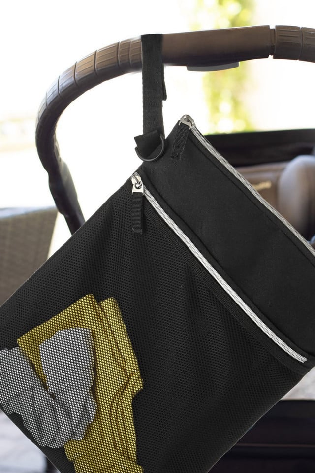 Buzunar mare cu fermoar pentru articole umede sau scutece murdare (capacitate de a ține 9-10 scutece)