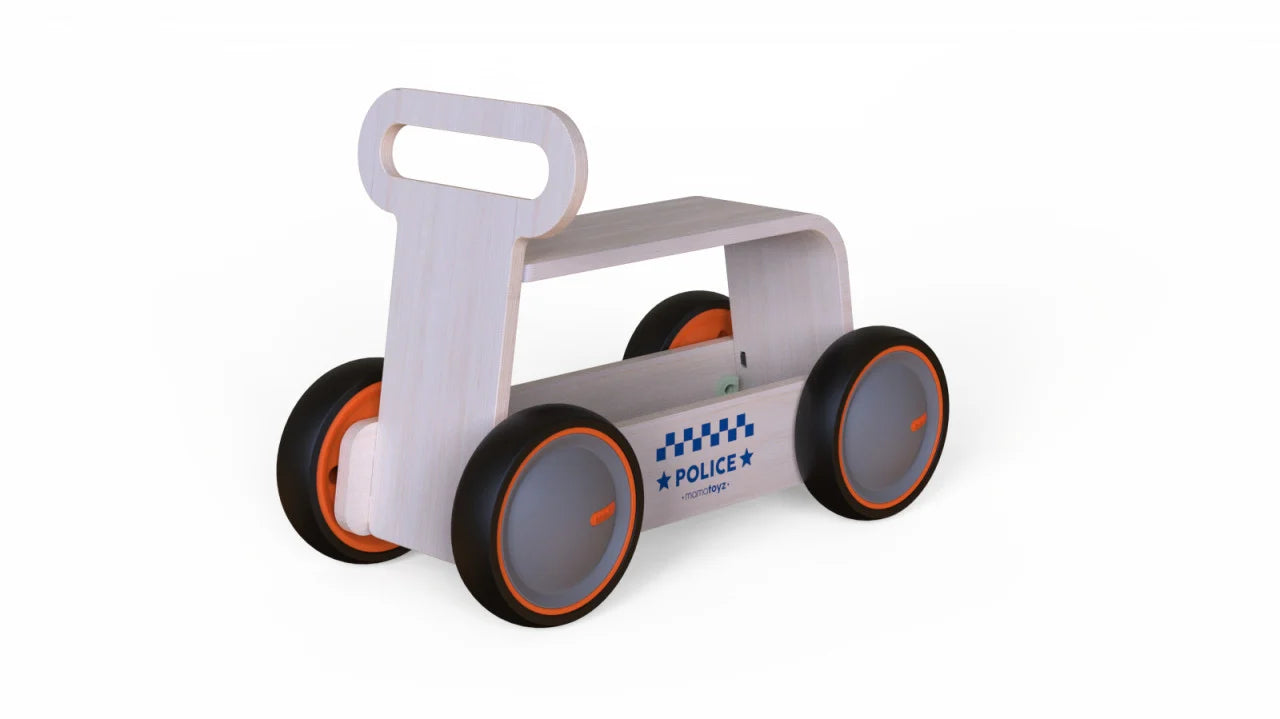 Jucarie din lemn 3 in 1 Politie DriveMe Wood: masinuta ride-on, premergator si carucior de jucarii produsa de MamaToyz este o jucarie multifunctionala.