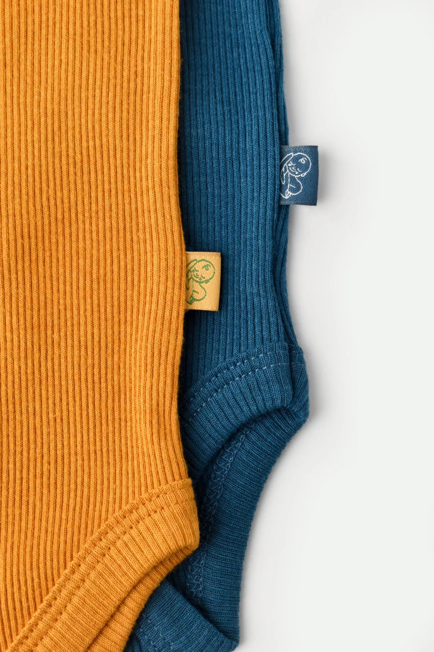 Set 2 body-uri bebe unisex din bumbac organic si modal - Bleumarin/Sofran, BabyCosy
