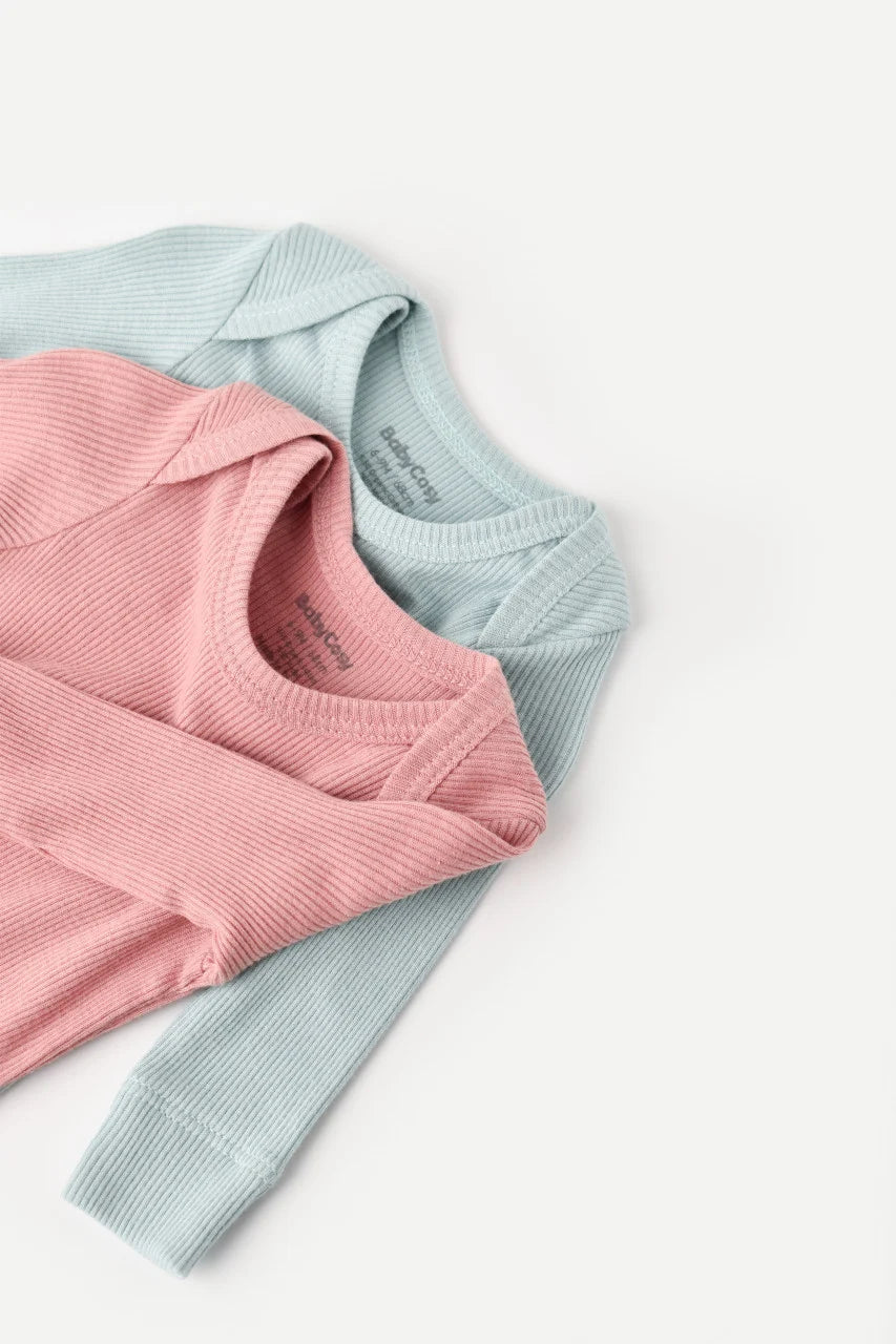 Set 2 body-uri cu maneca lunga bebe unisex din bumbac organic si modal - Mint/Rose, BabyCosy