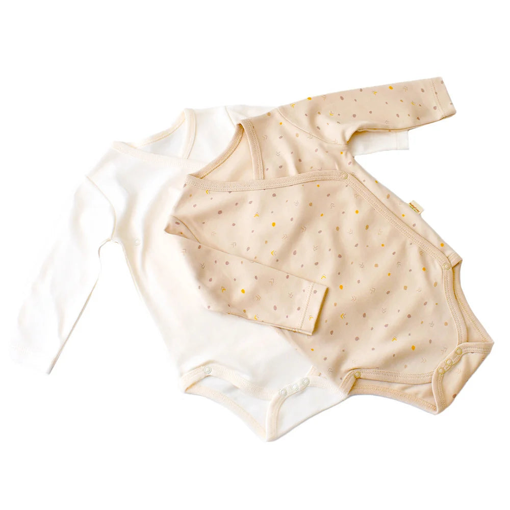 Set 2 body-uri cu maneca lunga petreceute bebe unisex -100% bumbac organic - Crem cu buline, BabyCosy