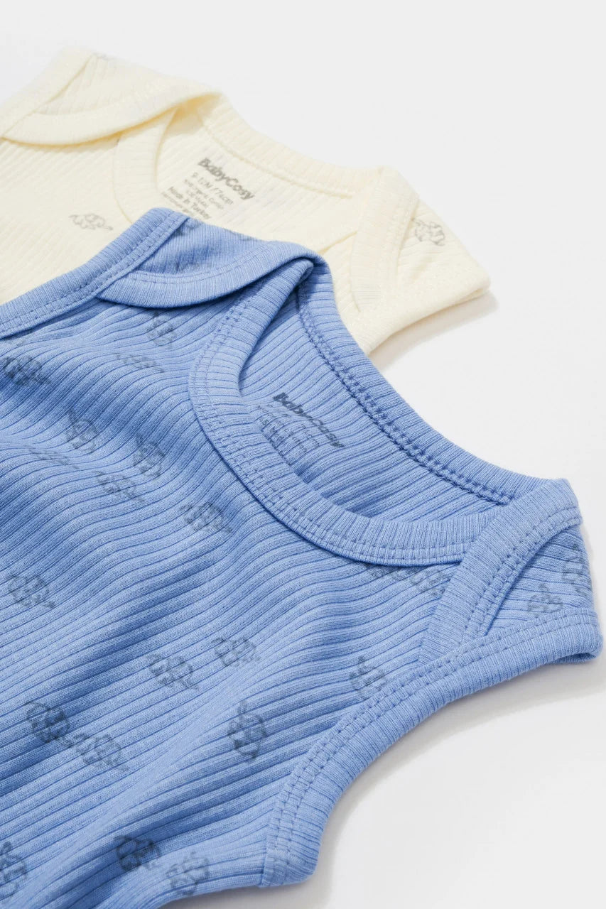 Set 2 body-uri fara maneci Printed, BabyCosy, 50% modal+50% bumbac, Ecru/Lavanda