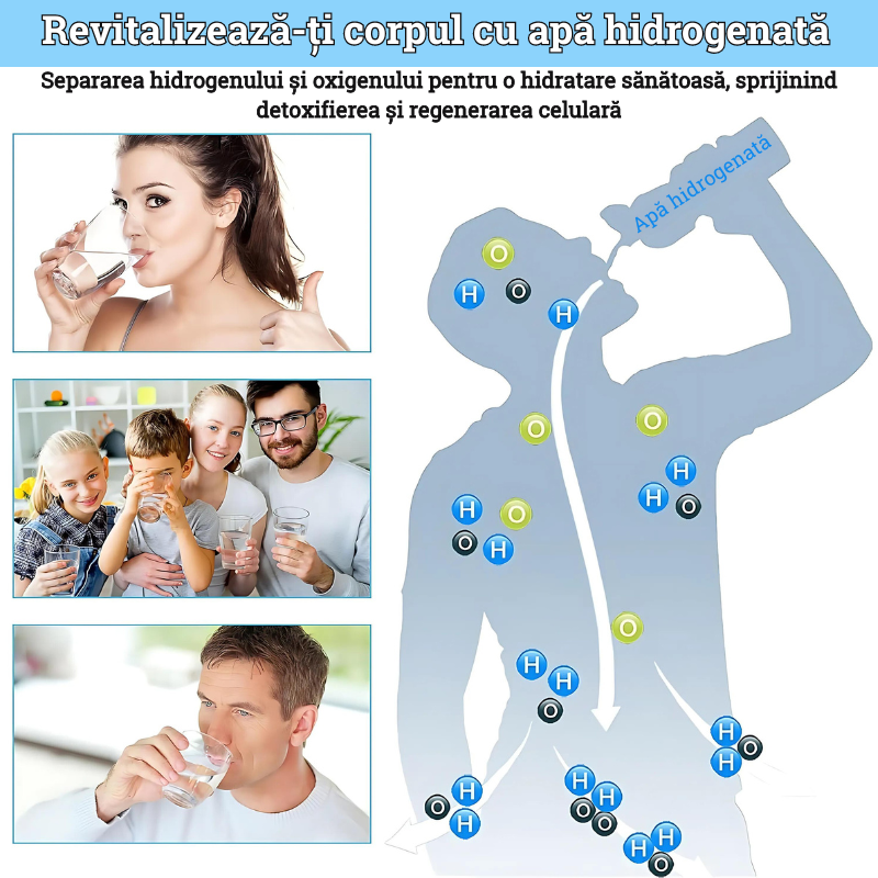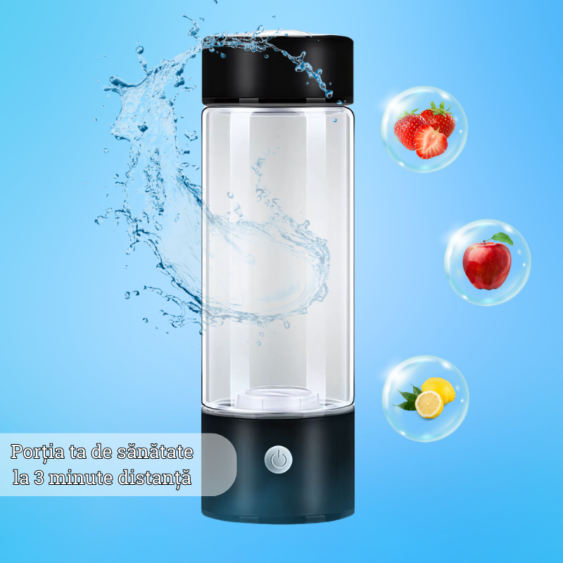 Alege Sticla Generator de Apa Hidrogenata/Ionizata pentru a te bucura de o hidratare optima, cu beneficii dovedite pentru sanatate, si transforma fiecare pahar de apa intr-un elixir pentru un stil de viata sanatos si plin de energie.