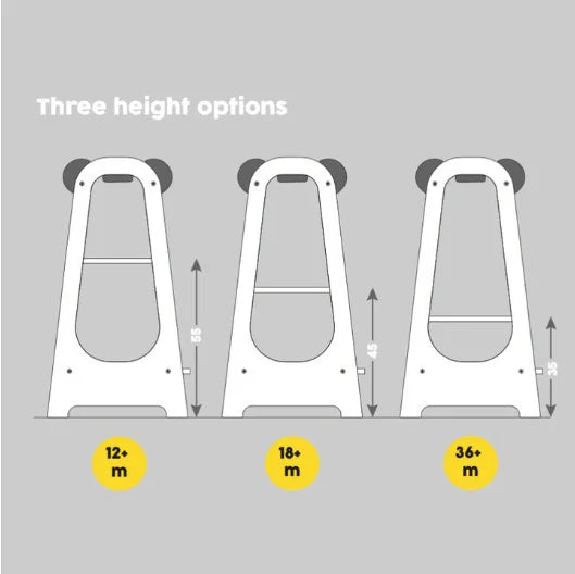 Inaltime reglabila: platforma reglabila pe care sta copilul are opritor pentru un plus de siguranta si pentru a preveni alunecarea acesteia in afara turnului; 3 poziti de inaltine de la 30 la 50 cm.