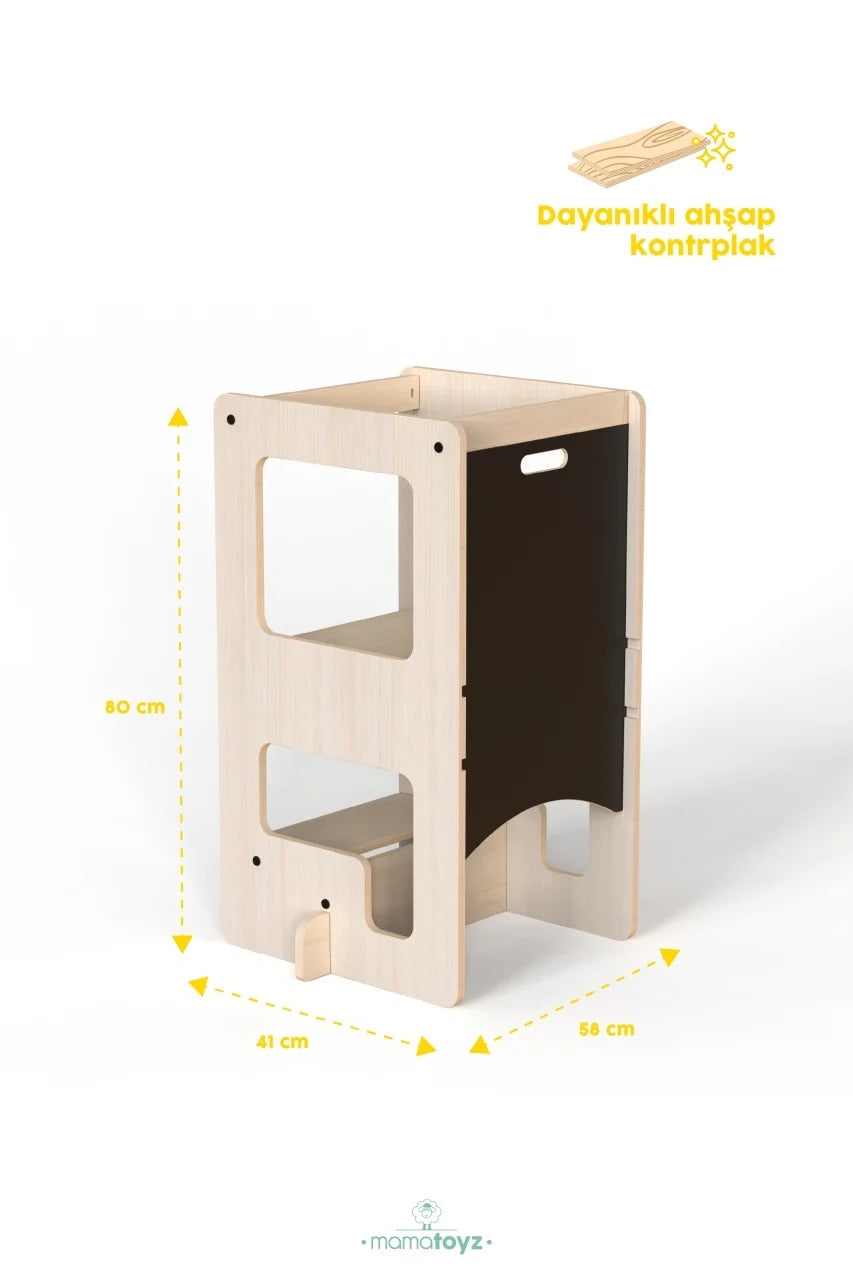 - Utilizare versatila: Poate fi folosit atat vertical, cat si orizontal. In pozitia verticala, functioneaza ca o turn de invatare pentru copii, iar in pozitia orizontala, poate fi utilizat ca masa sau platforma de joaca.