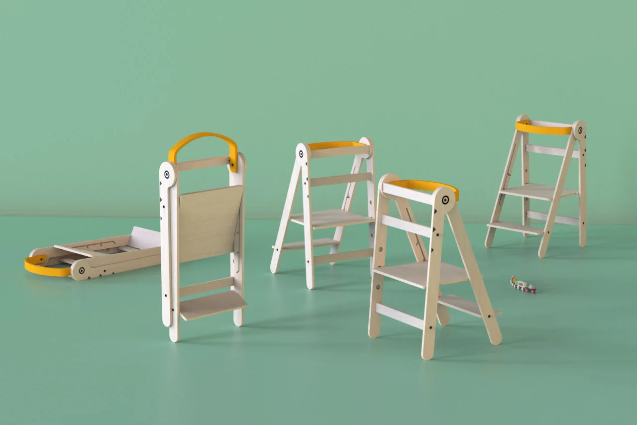 Usor de folosit: este proiectat pentru a permite copiilor sa urce foarte usor, avand 2 trepete de inaltime pentru a se potrivi diferitelor varste si a putea fi folosit multi ani la rand. Cu learning tower-ul pliabil, copiii mici nu trebuie sa astepte sa mai creasca pentru a ajunge sus la blat, si devin independenți ajungand sa se spele singuri pe maini sau sa ii ajute pe mami si tati in timp ce gatesc, totul in deplina siguranta